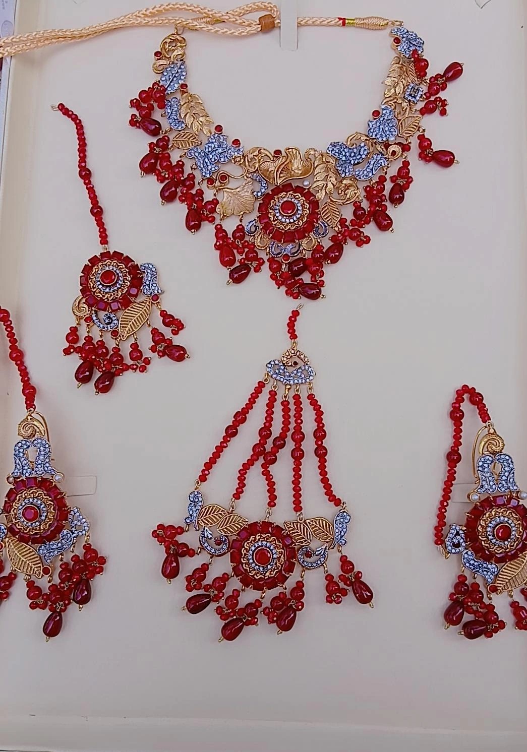 Premium Multi-Tone Finish: The combination of gold plating, silver-crystal work, and ruby-red stones makes this a versatile set that can match jewelry of different metals.